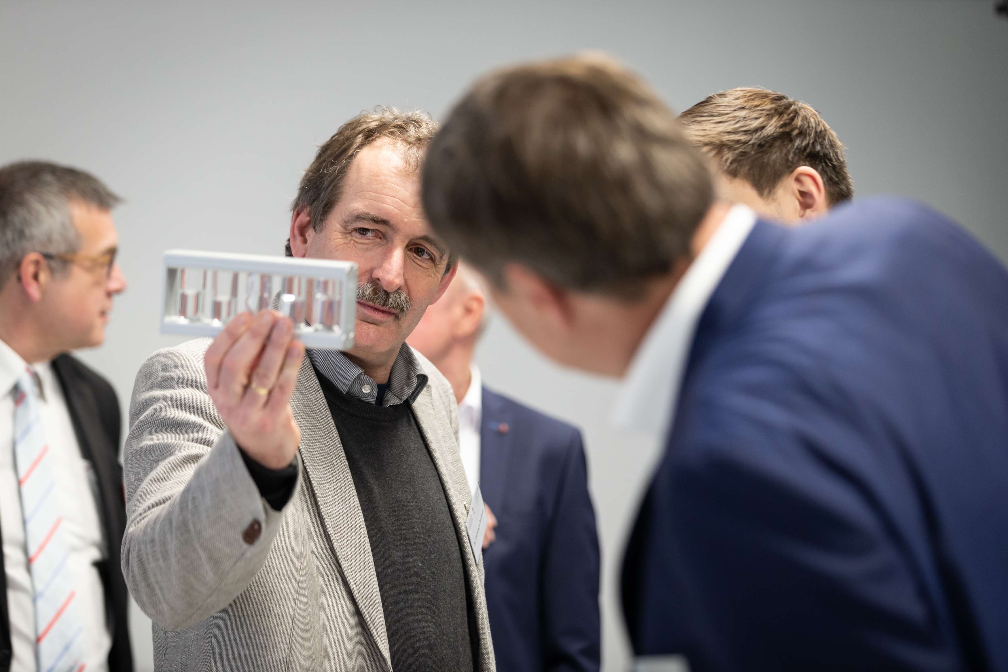 Spannend: Besucher der Eröffnung fachsimpeln über verschiedene Viskositäten